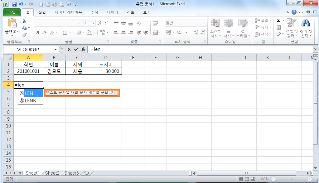 한마디로 말해서 "글자수세기" 함수 입니다. 문자와 숫자, 특수문자 등 몇 개 인지 표시해줍니다.